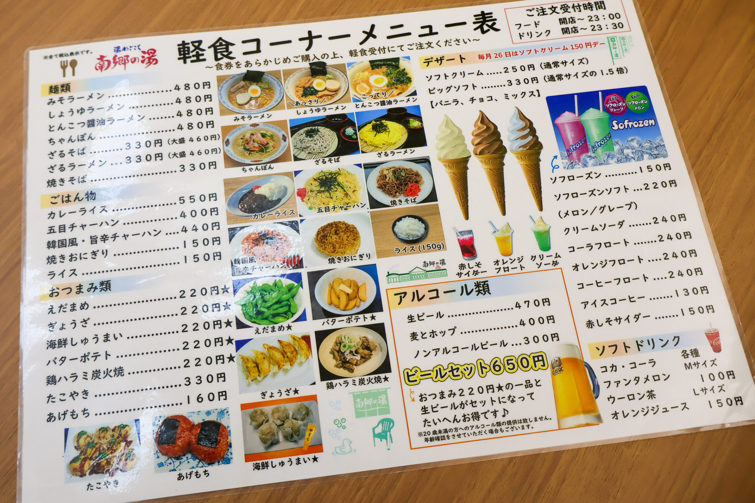 南郷の湯は軽食メニューも豊富でリーズナブル!