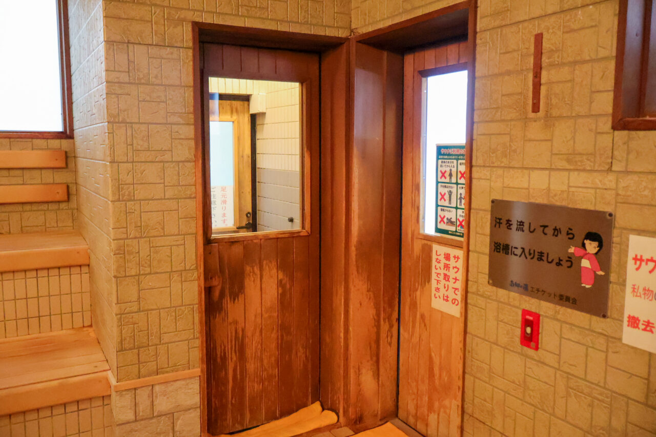 サウナには扉が2つ設置されており、内湯と露天につながっています。