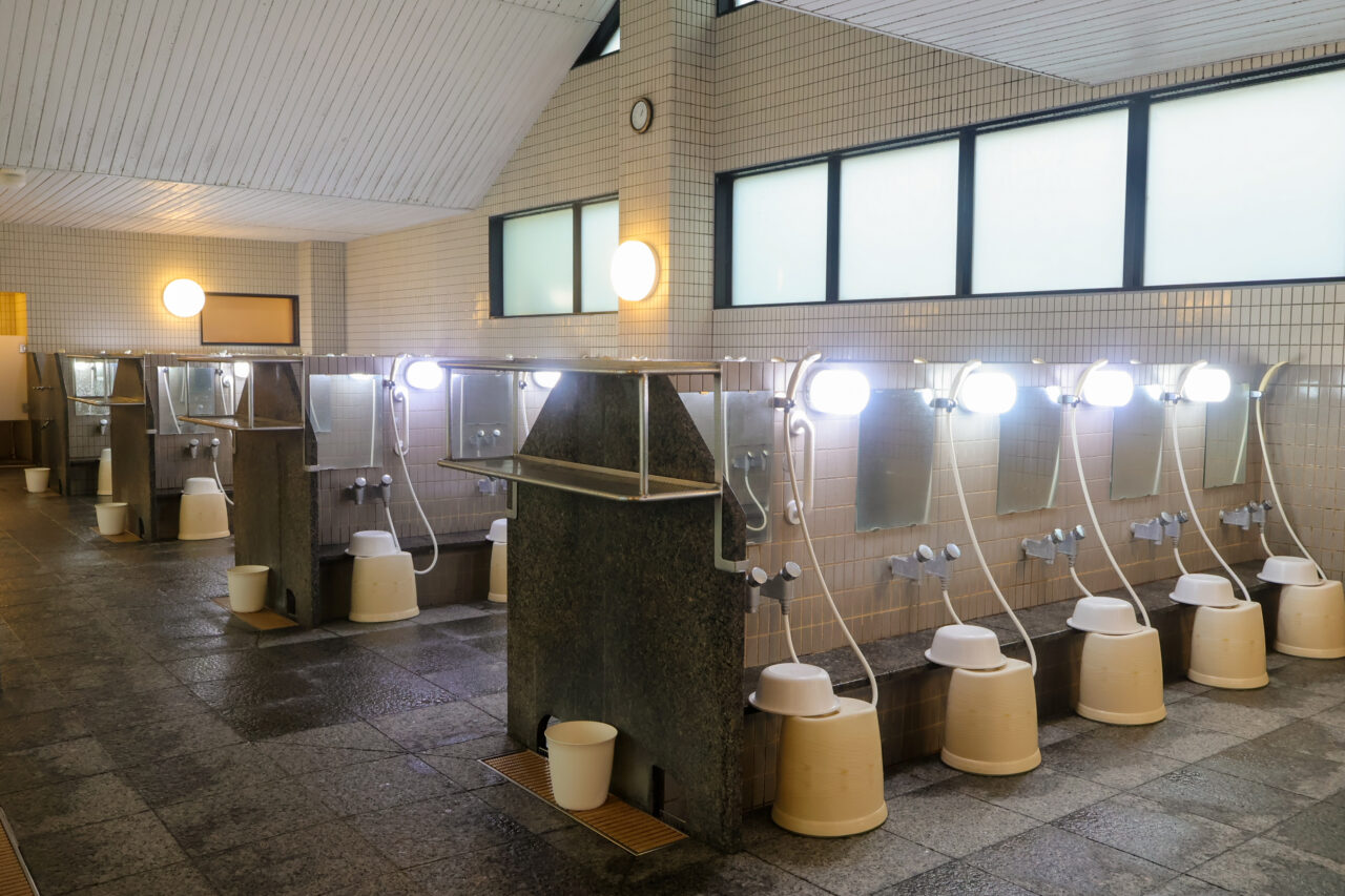なお、洗い場にはシャンプーやボディーソープなどは備えておりませんので、持ち込みを忘れずに!