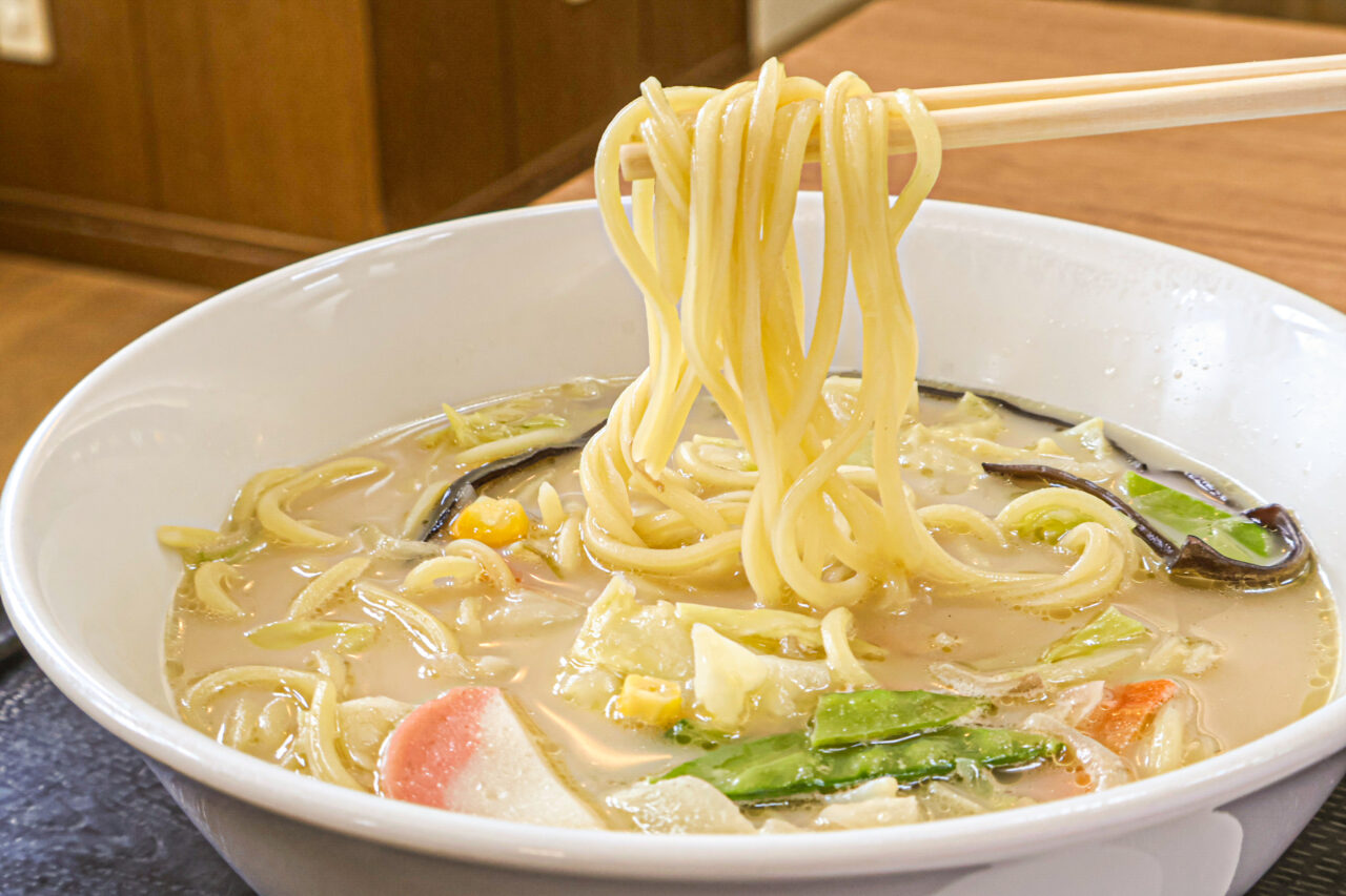 ワンコイン以下という値段を侮るなかれ、コクのある白湯スープでボリュームもあり満足度◎! お風呂に入って汗を流した体に染み込むような味わいです。