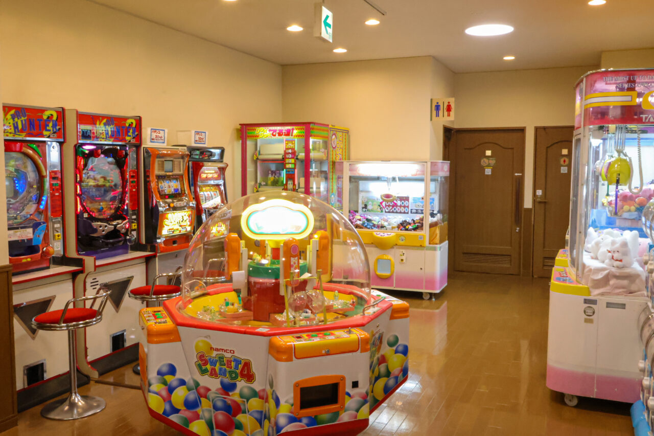 銭湯ではおなじみ、ゲーム&カプセルトイコーナーも一角に用意。