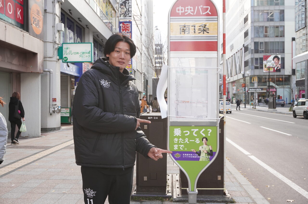 桜井選手の広告付きバス停も南1条や清田区役所など各所に登場!
